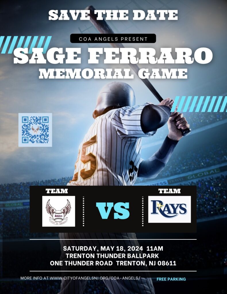 This Saturday, May 18, 2024 at 11am the Sage Ferraro Memorial Game at Trenton Thunder Ballpark -COA Angels vs Hatboro Raydogs…